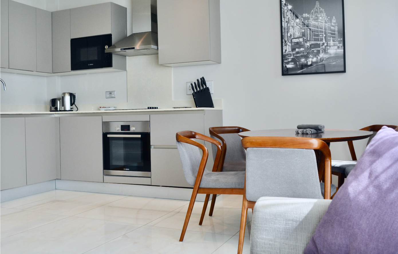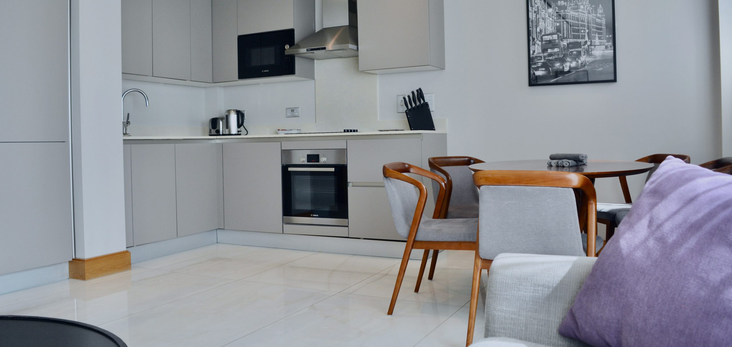 Each of our apartments are exceptionally well appointed, complete with complimentary wireless internet access, LED TV’s in all bedrooms, high quality kitchens and bathrooms, 24-hour reception/concierge, laundry facilities, maid service, air conditioning and underfloor heating.