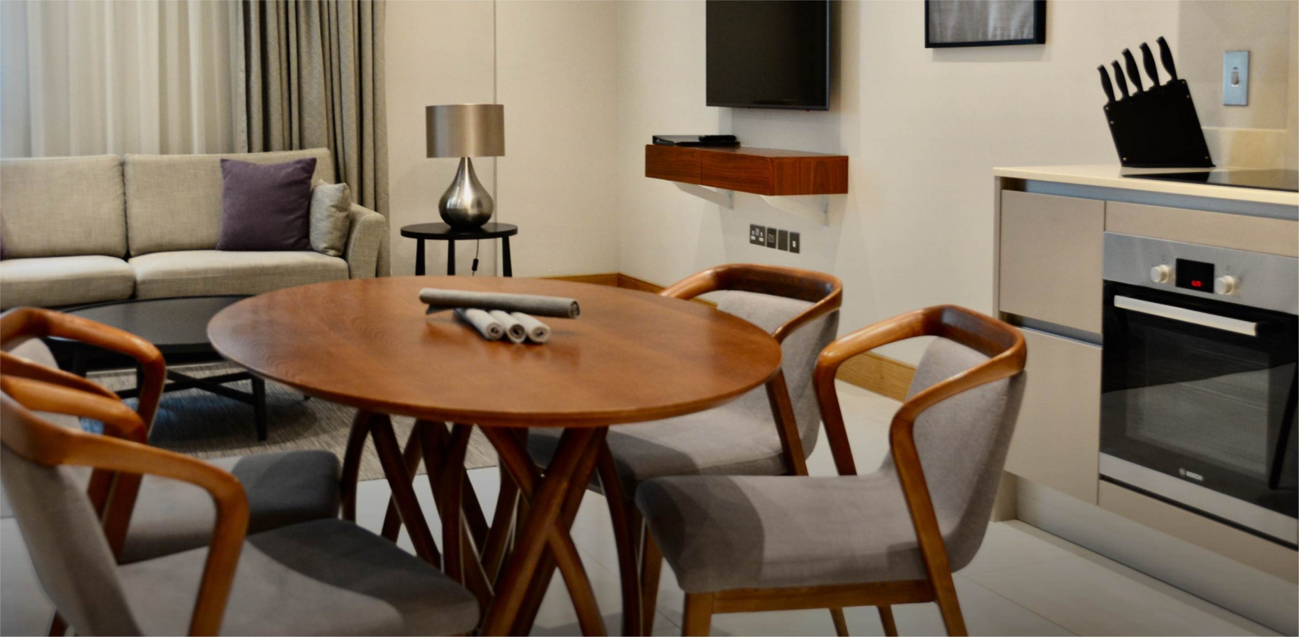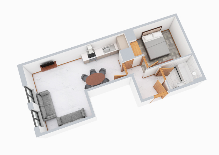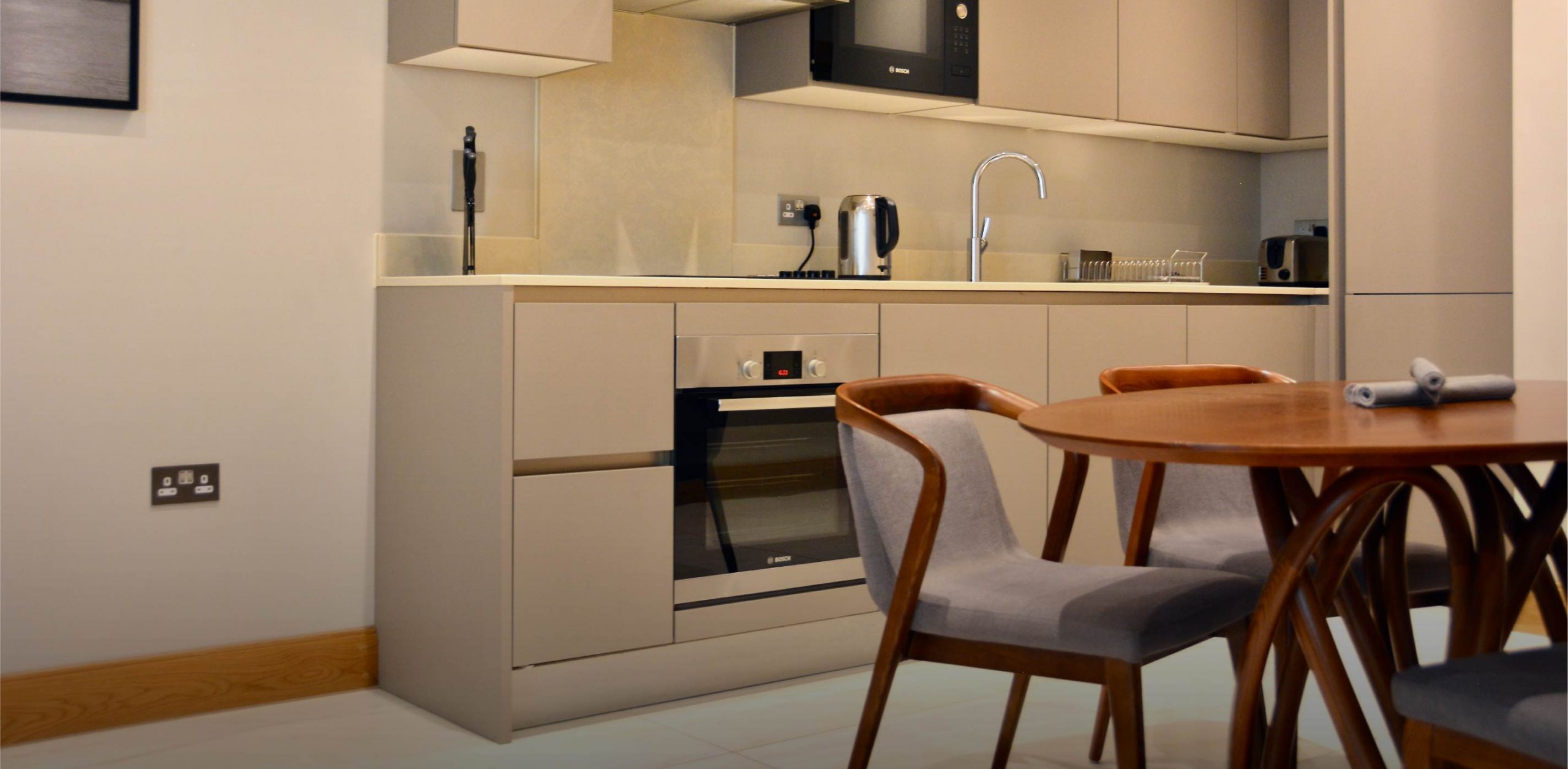 One Bedroom Deluxe Apartment consisting of one King/Super-King bedroom, one bathroom, a fully-equipped kitchen with appliances and a spacious living/dining area with sofa bed.