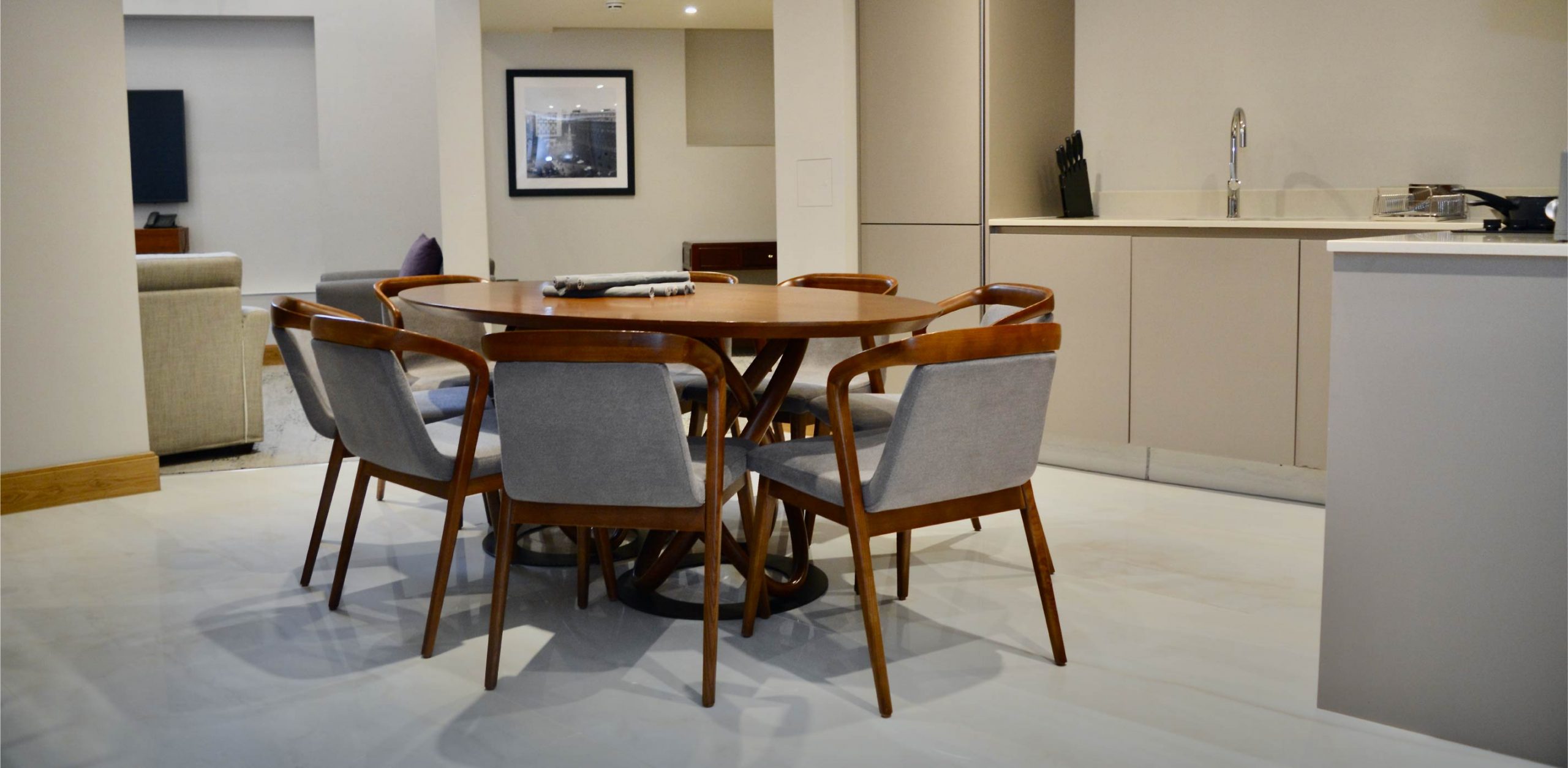 - Spacious Living Area with Sofa Bed and 50″ TV