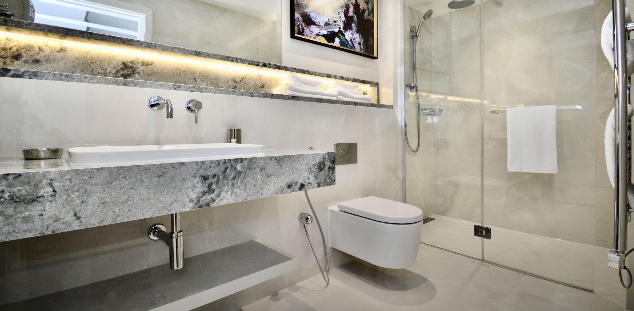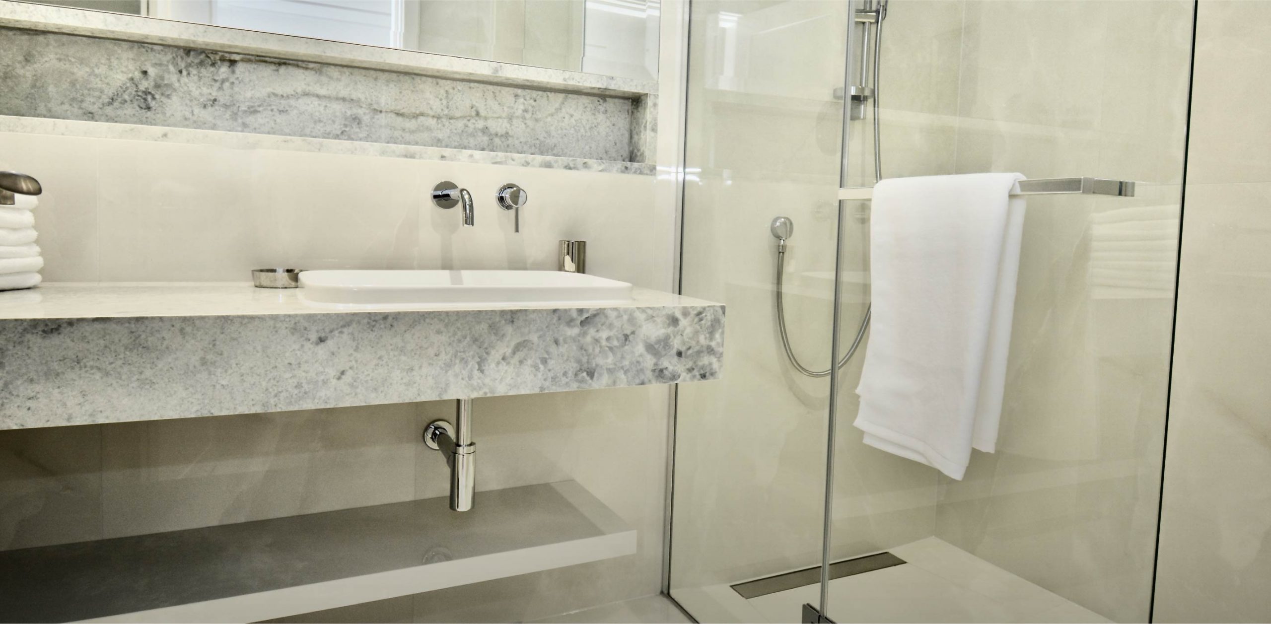 • Four white marble bathrooms with walk in rain shower